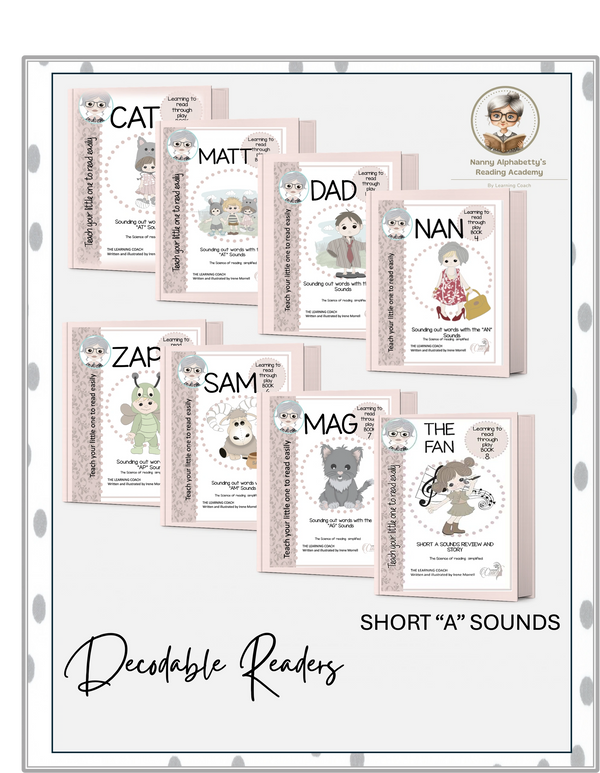 LESSONS 1-8 Learning new sounds, blending new words and building on their skills.. your child doesn't even need to know the alphabet! We teach the first few sounds and sight words they need to know, and how to blend them so they can decode words and then read the book. . These delightful books immerse young learners in the magic of reading, following the Cheerful Explorers on adventures while mastering the art of decoding the short 'A' sound. Engaging stories and interactive activities make learning a joyous experience, fostering both phonics proficiency and a love for exploration. Come join us on this reading journey, where the spirit of discovery harmonizes with the sounds of short 'A'!